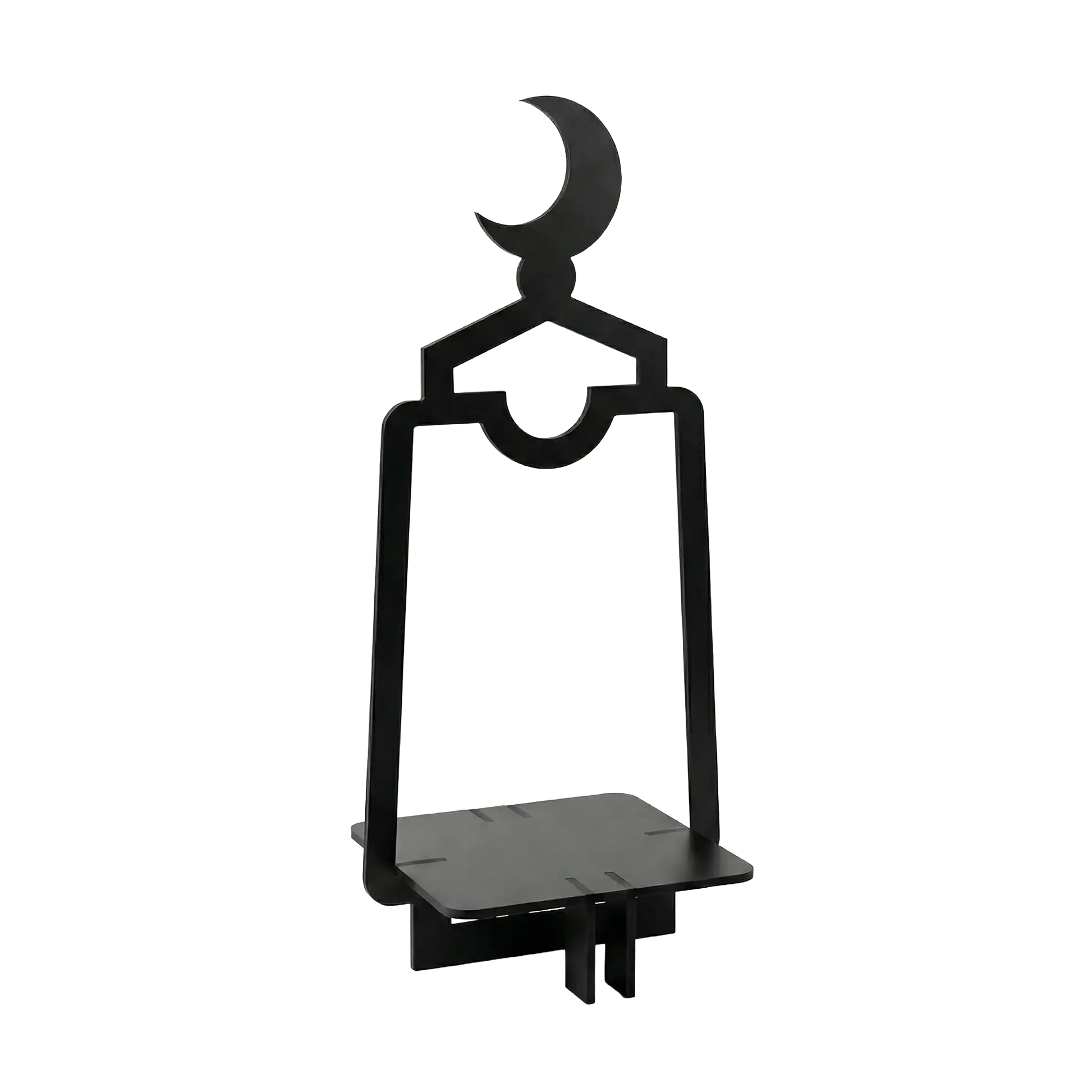 Crafted as a freestanding table décor element, the design incorporates a lower platform ideal for displaying lanterns, candles, small floral arrangements, or Ramadan accents. The open structure keeps the piece visually light, allowing it to stand beautifully on console tables, dining tables, sideboards, or prayer corners without overwhelming the space.