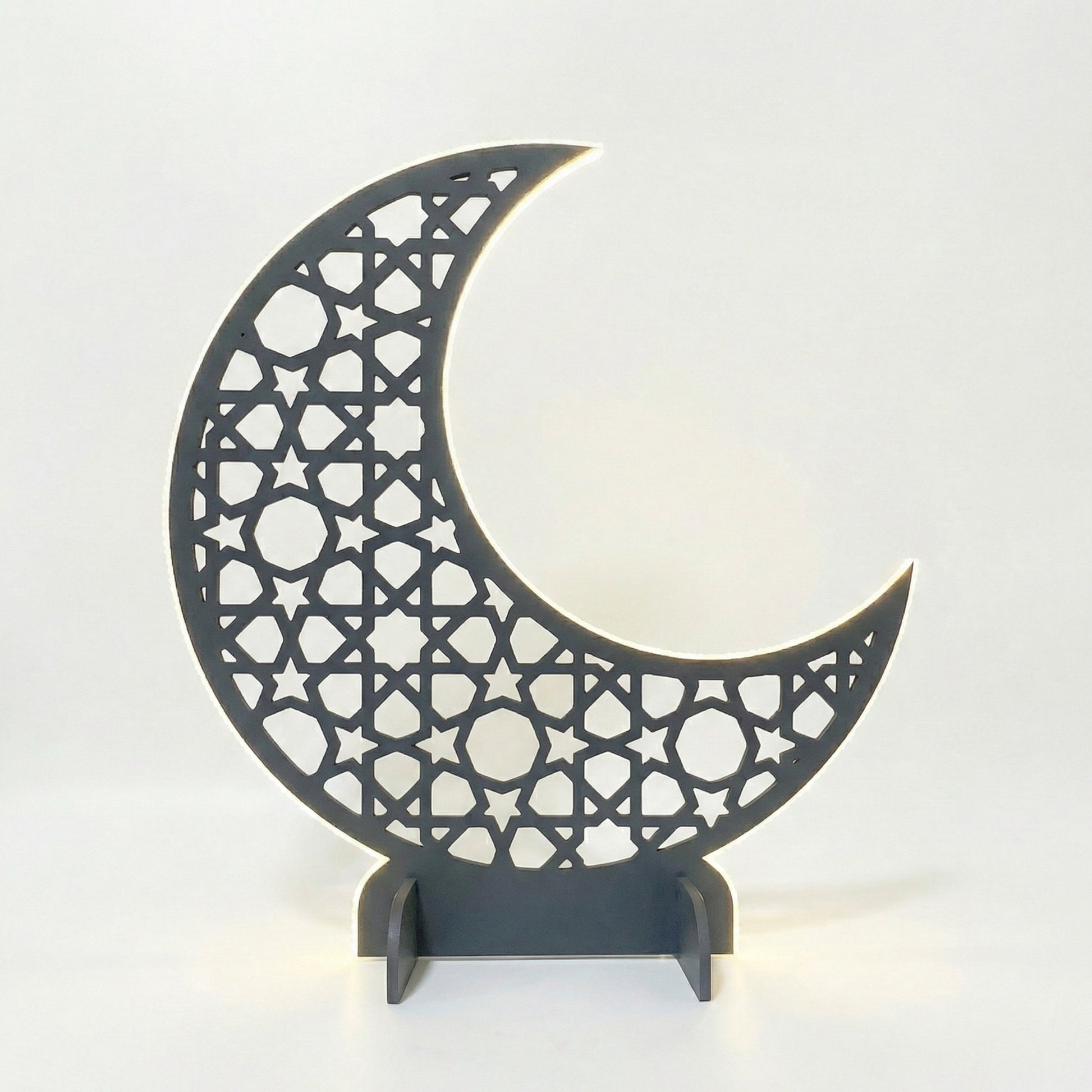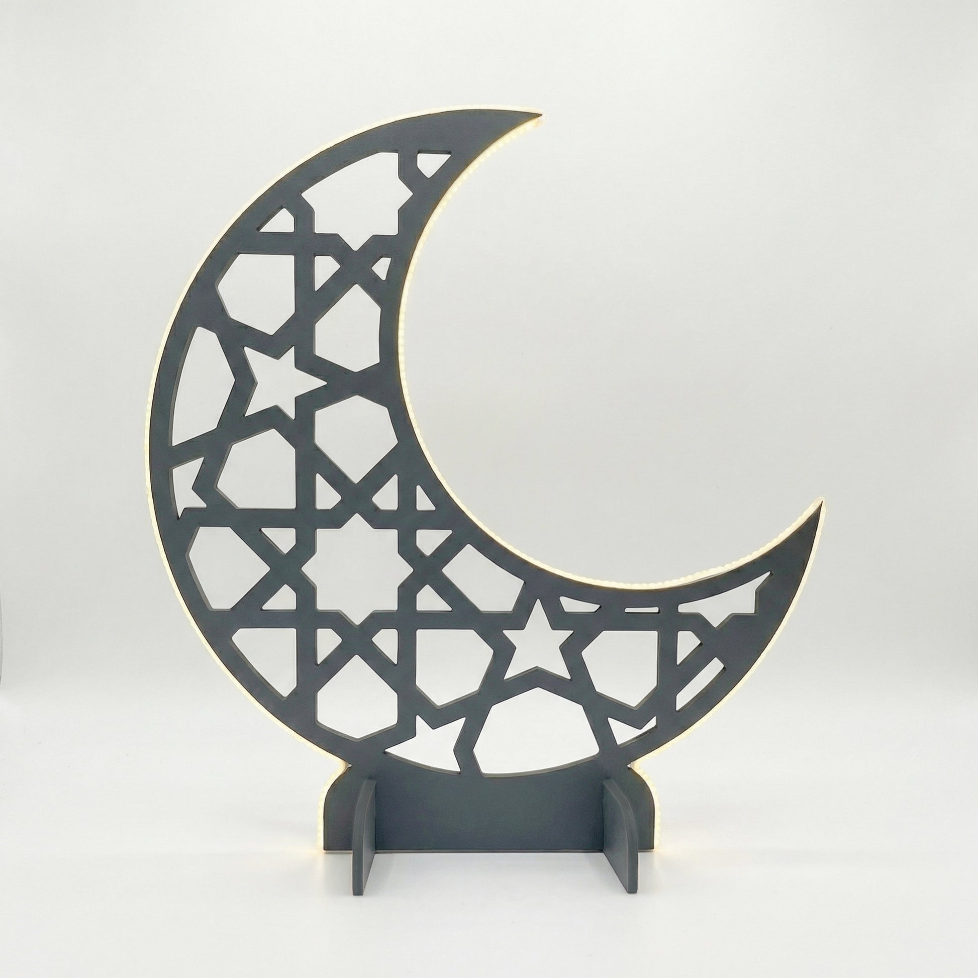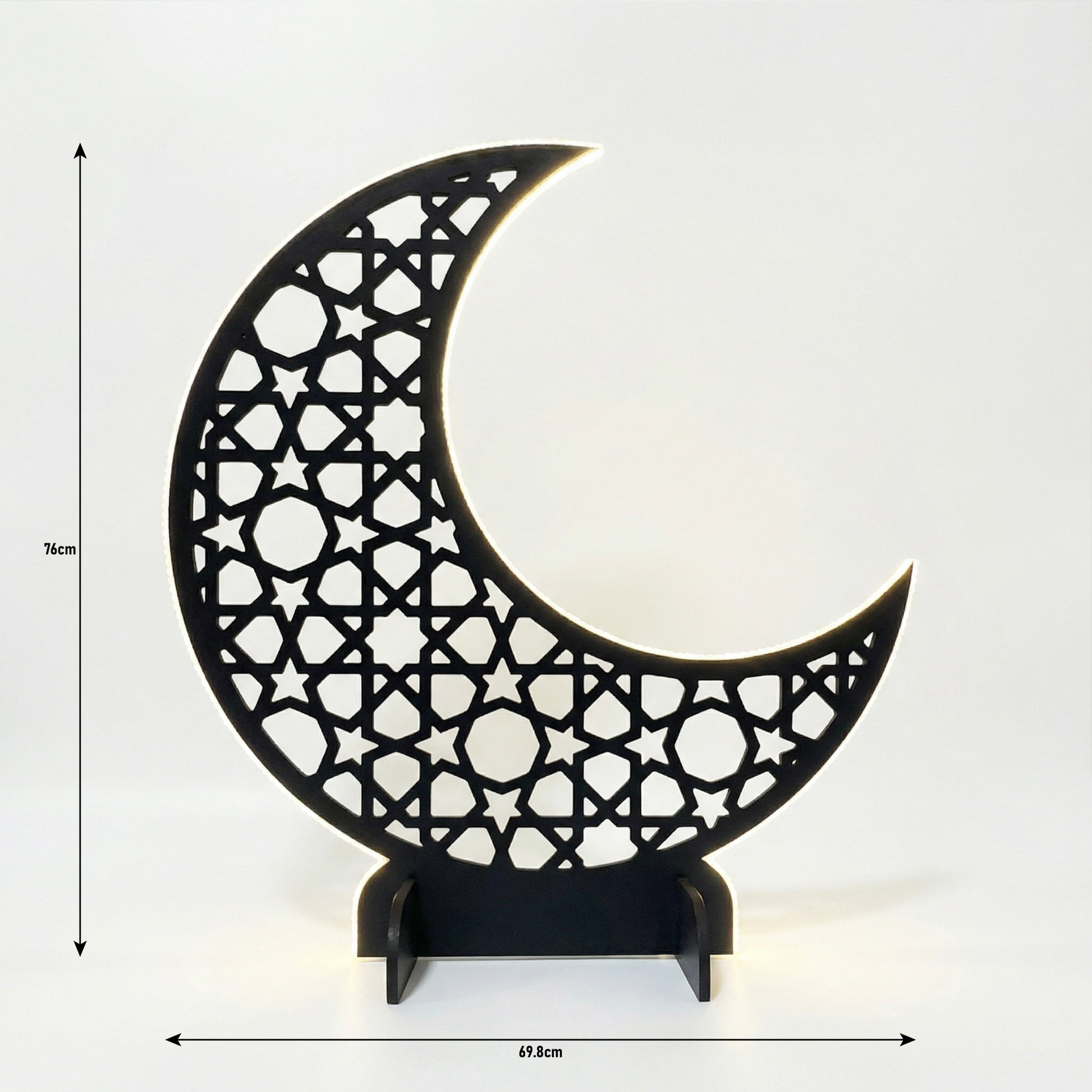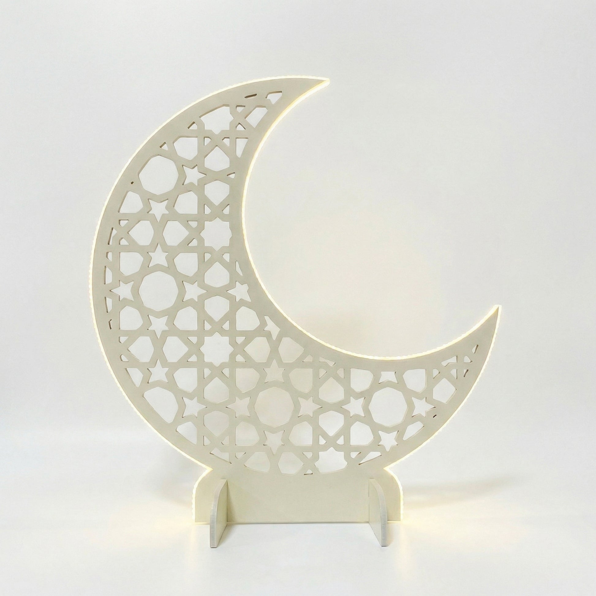 Add a radiant glow to your Ramadan nights with our LED-lit wooden Hilal. Illuminate your gatherings with its enchanting LED lights, creating a warm and peaceful atmosphere for prayer and reflection. Make it the perfect centerpiece for your Ramadan decor.