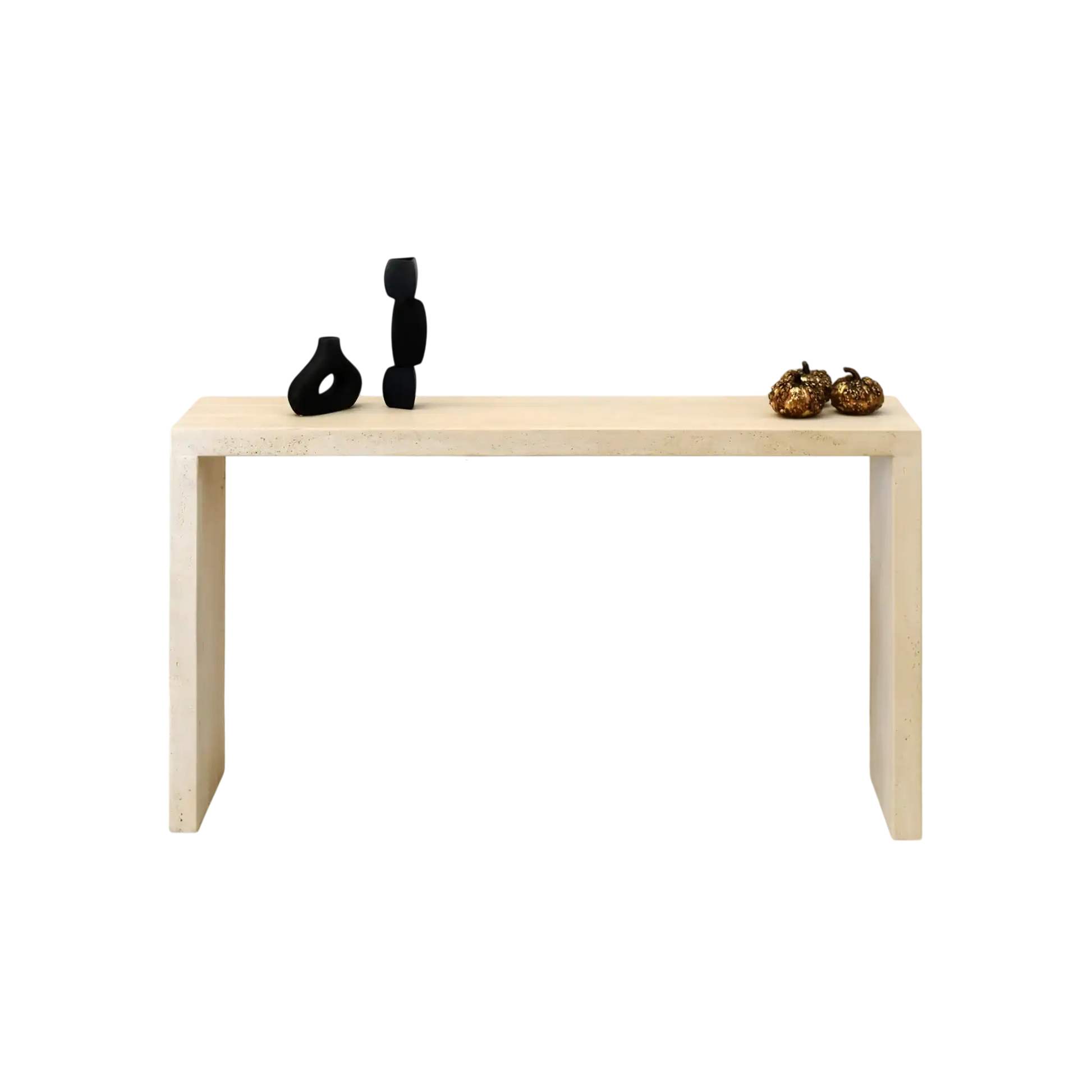 The soft, neutral beige tones of the travertine lend a warm and inviting ambiance to your space, making it a perfect addition to various interior design styles. Whether placed in a living room, hallway, or entryway, this console tables timeless color palette allows it to blend seamlessly with a wide range of decor themes, from contemporary and minimalist to traditional and rustic.