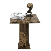 Introducing the Tiger Side Table, a striking embodiment of sophistication and elegance. Crafted from luxurious Dark Emperador Marble, this side table is a testament to opulence and timeless design. The top square marble surface exudes a rich, deep allure, adding a touch of refinement to any space it graces.
